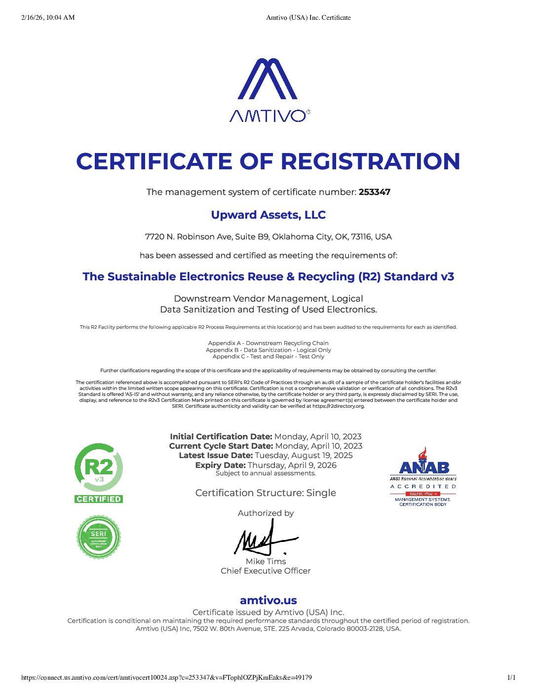 At Upward Assets, it is our privilege to serve each client with respect, integrity, and excellence. Should you have any questions or concerns, please do not hesitate to contact us. We look forward to being your source for all ITAD needs.